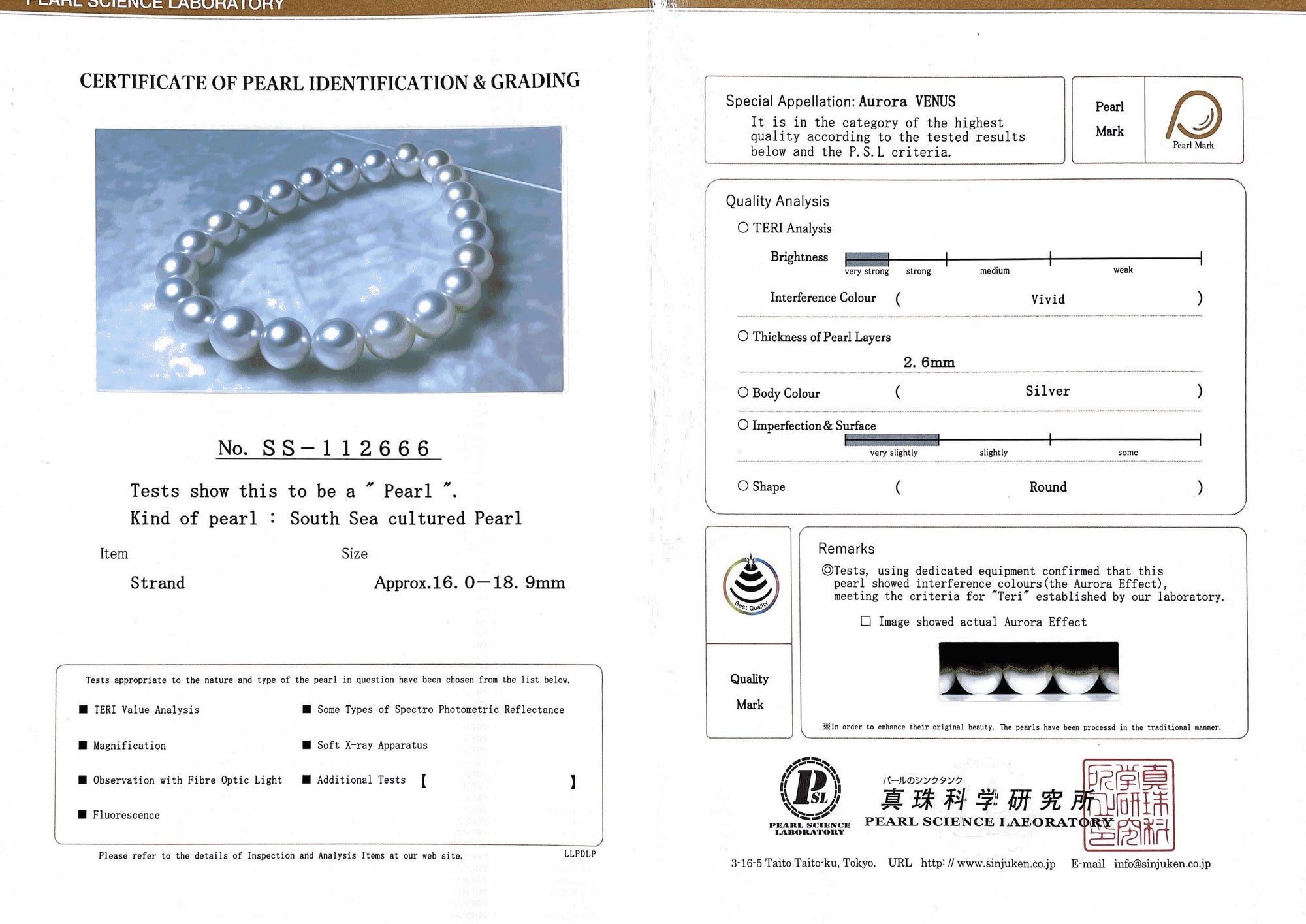 Adorn your neckline with this exquisite piece featuring 16-18.9mm AAAA quality White South Sea pearls, hand-selected for their exceptional luster and unique charm. Each pearl in this rare necklace exudes an allure that is both timeless and captivating, making it the perfect accessory for any occasion. Packaged beautifully in a jewelry gift box, this stunning strand comes with a complimentary pearl care kit, ensuring that these gems stay radiant for years to come.