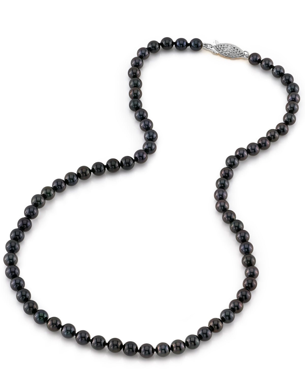 This exquisite necklace showcases a collection of 5.5-6.0mm Black Japanese Akoya pearls, each handpicked for its radiant luster and unique beauty. The pearls are meticulously strung and double-knotted with the finest silk thread, ensuring both durability and elegance. Perfect for any occasion, this piece adds a touch of sophistication and charm to your ensemble, making it a timeless addition to your jewelry collection.