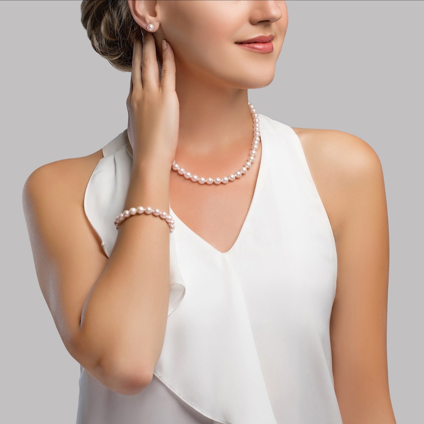 This exquisite matching pearl jewelry set features the renowned Hanadama Japanese Akoya pearls, celebrated for their delicate to deep rose overtones and exceptional brilliance. Graduating from 7.5-8.0mm, each piece showcases an unparalleled luster, thanks to the thick nacre that is characteristic of these premium pearls. Hand-crafted to perfection, the necklace measures a versatile 18 inches, while the bracelet is designed in a standard adult size of 7.5 inches. Every detail, from the double-knotted silk threading to the luxurious 14K gold clasp, reflects our commitment to quality and elegance.
