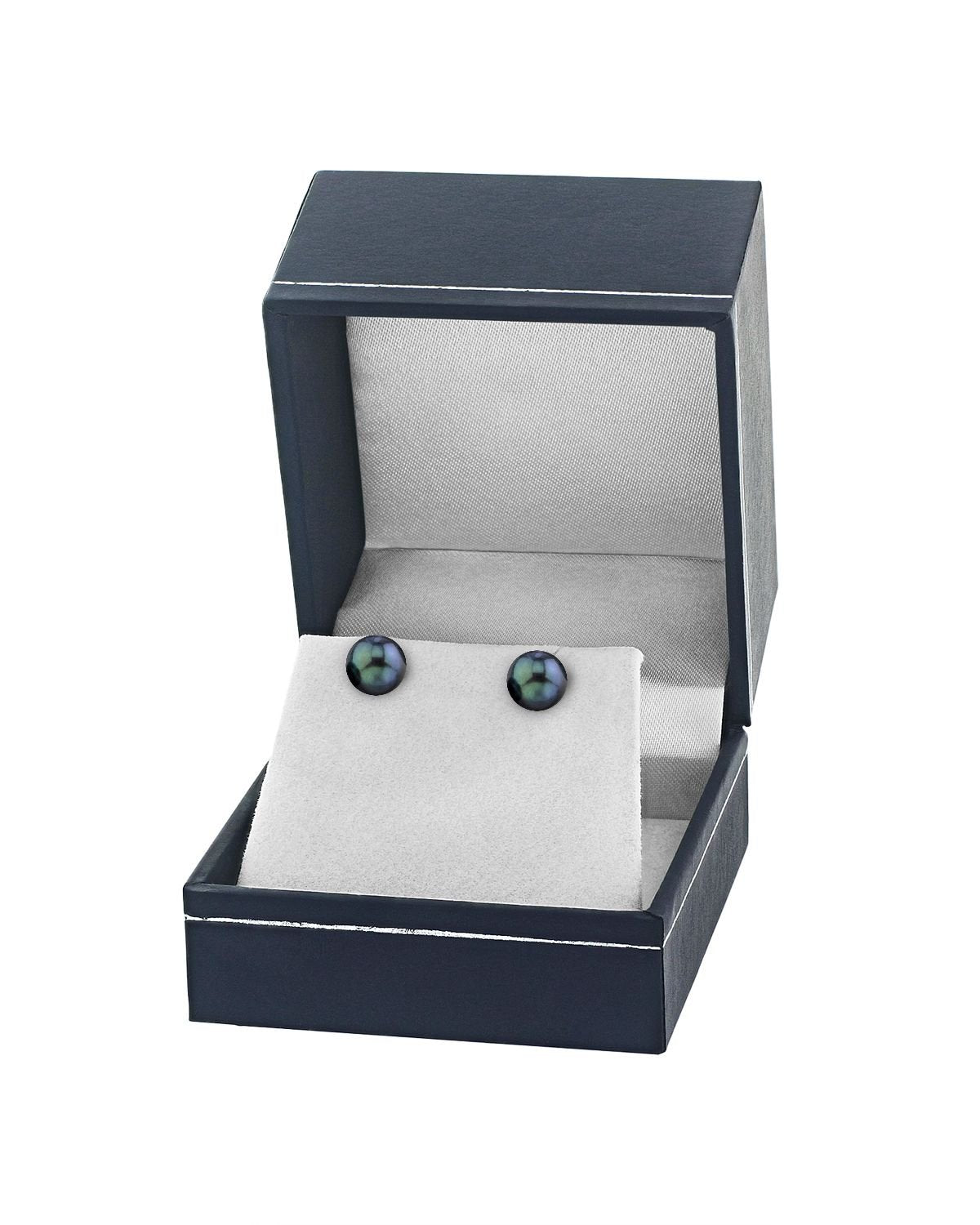 Discover the elegance of perfectly round, color-treated Black Akoya pearl stud earrings, measuring 7.0-7.5mm. Each exquisite pair radiates a bright, glossy luster, showcasing unique Midnight Blue to Greenish-Black overtones. Crafted with care, these pearls are available in your choice of solid 14K white or yellow gold findings. Whether you prefer the classic stud, non-pierced clip-on style, or lever-back dangles, each piece is handmade to order in our Los Angeles workshop. Your new earrings will arrive beautifully packaged in a presentation box, complete with a certificate of authenticity and detailed pearl care instructions.
