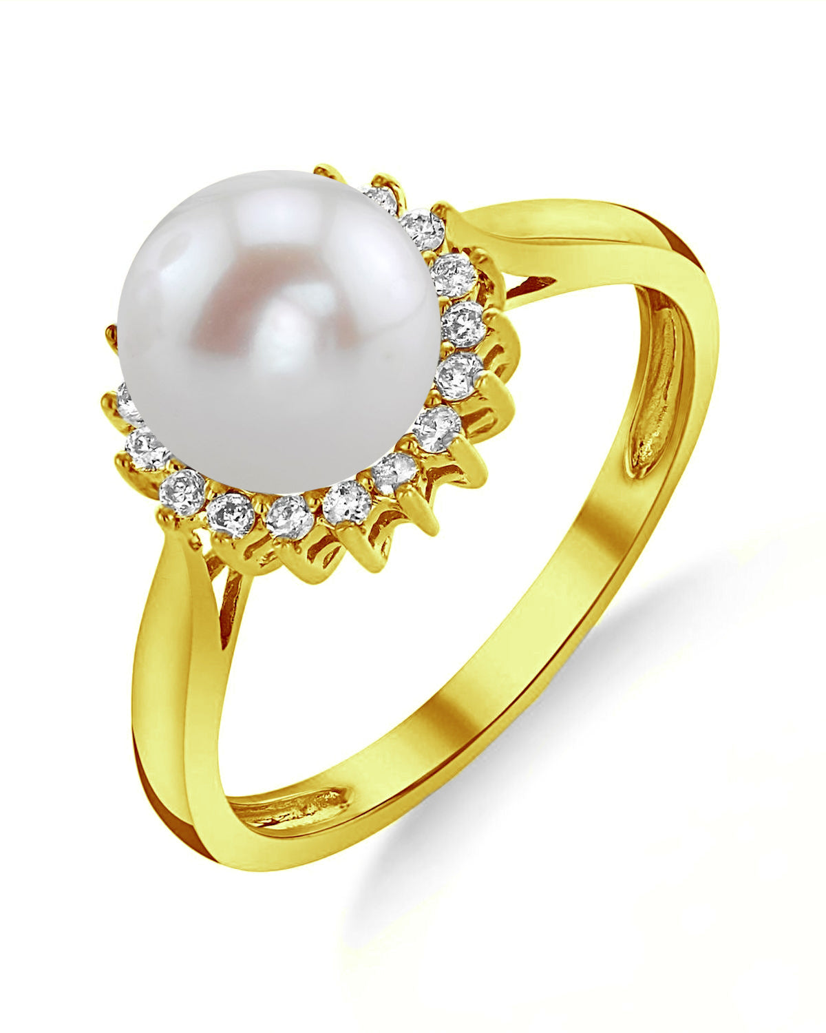 This beautiful pearl ring features a lustrous AAAA quality 7-8mm white Freshwater pearl, imported directly from the pearl farms of China. The pearl is mounted with dazzling SI clarity diamonds on a 14K gold band. This ring is available in a number of sizes for the perfect fit.