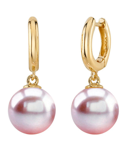 These exquisite pearl huggie earrings add a touch of elegance to any occasion. These earrings feature two lustrous 9mm AAAA quality pink Freshwater pearls, hand picked for their gorgeous luster and unblemished surface. The pearls are mountings on 14K white gold.