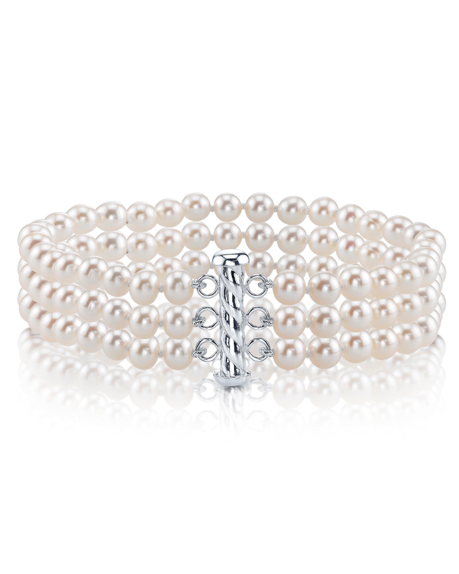This triple white freshwater pearl bracelet is certain to grab the attention of anyone who sees this beauty. This pearl necklace is compiled of three high-quality strands of hand picked white freshwater pearls with 'Very High' grade luster, our highest grade available. The pearl color on this strand is white and the bracelet comes affixed with a beautiful Sterling Silver clasp.