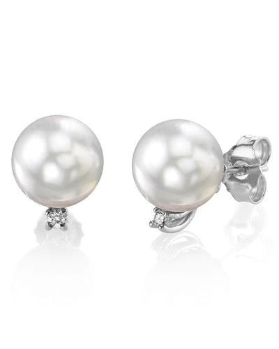 These exquisite stud earrings showcase two 9mm AAA White South Sea pearls, meticulously selected for their stunning luster and flawless surface. Handcrafted with care, the pearls are elegantly set in the finest 14K gold, complemented by a brilliant .15 carat SI quality diamond that adds a touch of sparkle. Perfect for both everyday wear and special occasions, these earrings promise to elevate any outfit with their timeless charm.
